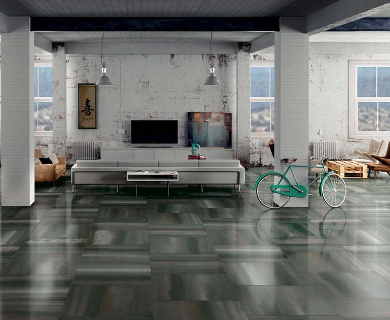 В керамограните с имитацией металла современное очарование и эстетическая сила металлов с их множеством различных текстур и отделок сочетаются с техническими характеристиками керамогранита. Это позволяет использовать керамогранит под металл также в тех областях применения, где требуется особая техническая стойкость и стойкость к истиранию, а также использовать на открытом воздухе, с гарантией того, что материал не изменится со временем, даже в экстремальных погодных условиях.